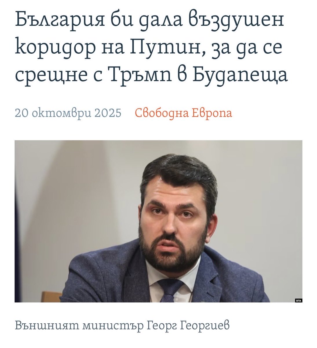 Във връзка с потенциална среща между Путин и Тръмп в Унгария, външният министър заяви, че България е готова да осигури въздушен коридор, но това предизвика полемика. Опозицията поиска парламентарно питане за спазване на ЕС санкциите.